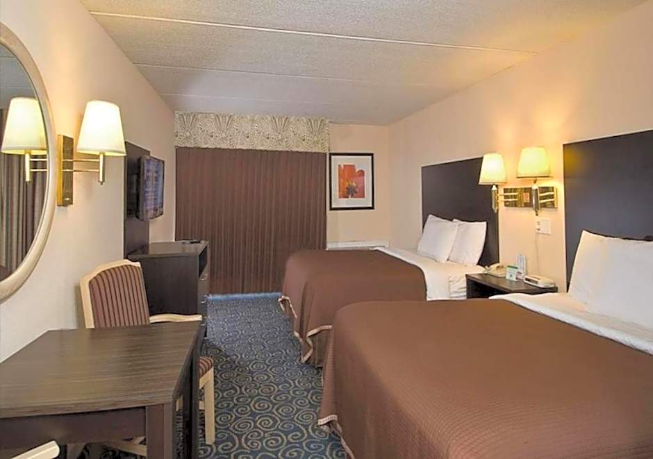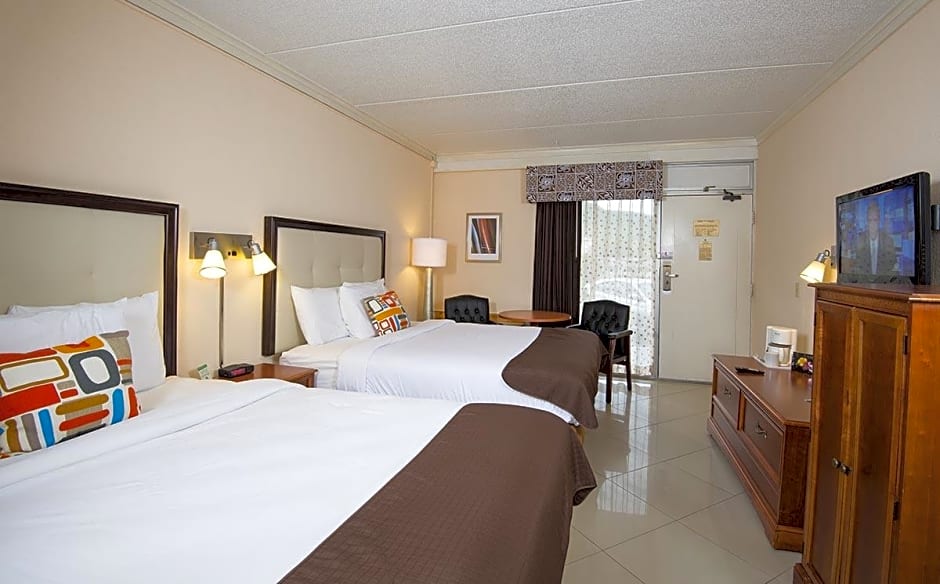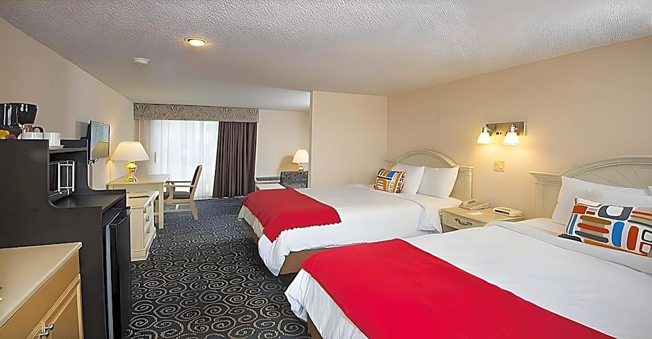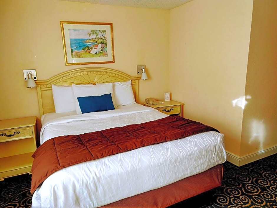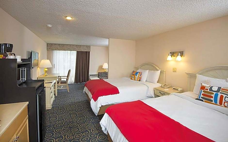 This standard guestroom is located in the Poolside Motel Building and includes exterior entrances, vinyl floors and a 32-inch flat-screen TV. A microwave, refrigerator and coffeemaker are provided.